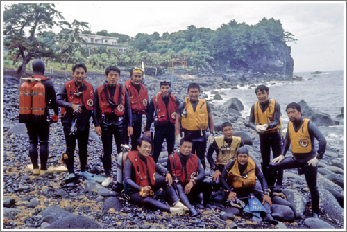 当時のアメリカはケネディ大統領のもと、人類が月面へ旅するアポロ計画が始まったときで、日本もあらゆる分野で先進国アメリカに学ぼうとする意欲に溢れていました。こうした中、当時の海洋開発ブームにのって、帰国後すぐに日本で始めた基礎スクーバ・コース(通称ブルーカード・コース)は思いの他盛況で多くの受講生を集めました。レジャーのダイバーだけでなく、水中作業を伴う報道関係者、学校の教師、建設関係者、漁業関係者等も、受講する様になっていました。