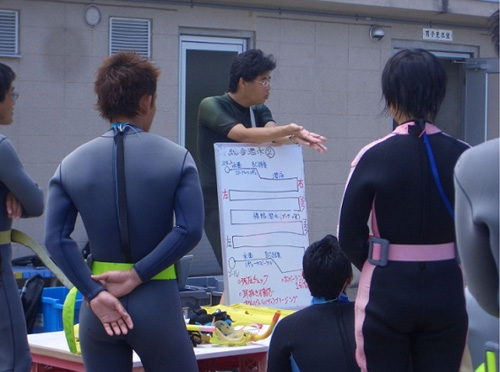 不況を乗り切るのは緊急の問題ですが、不況に影響されない経営環境をつくることも大切です。NAUIのカリキュラムを持って学校現場への働きかけをおこない、大学教員がダイビングを指導できるような方法論を提案し、具体的にカリキュラムを提示し、研修システムを確立し、器材の提供等ダイビング教育が実施できる環境を整えていかなければなりません。大学で専門性を持った体育の先生がバスケットボールやバレーボール、スキーや水泳を教えるのと同じようにダイビングを教えるだけのことですから、指導者養成といってもそんなに長い時間を必要としないでしょう。指導者の質は元来高いレベルにあり問題にはなりませんが、逆に私たちインストラクターには、学校教育界への進出に伴って自らの力量を高める準備が必要です。今後指導者の質の高さが求められることは必至です。