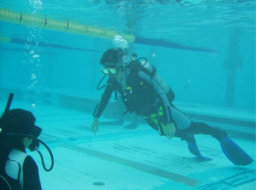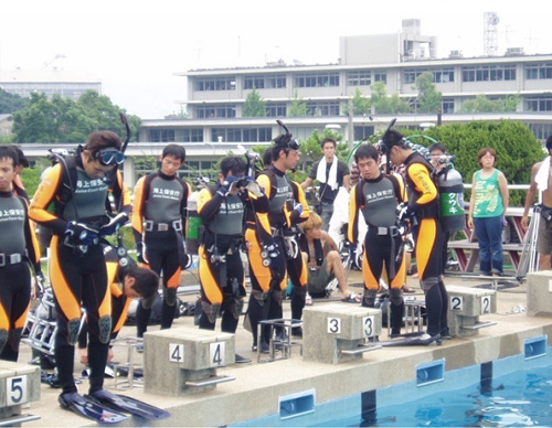 さて、ダイビングをはじめた当初より私はダイビングをメジャースポーツにしたいという壮大な夢を描いていました。まだ、ダイビングを誰もが経験できるような環境がありませんし、一般的なものとして認識するには圧倒的にダイバー人口も不足しています。その意味では学校体育、特に大学体育の果たす役割は大きいと考えています。今日のゴルフ人気も、かつて大学が「ゴルフ」を授業で展開していったことで広く理解され始め(背景にはバブル経済と接待ゴルフがありましたが)、結果として今日の人気を支える人口層を築いていった事実を見過ごせません。大学でダイビングを指導できる者が少ないことから、まだまだダイビングの授業は全国的にも珍しいこととは思います。しかし、打ちっぱなしのゴルフ場でレッスンプロに依頼をして始めたゴルフの授業と同じで、時間をかけて大学教員も徐々に学生に技術指導ができ るまでに上達していったのです。