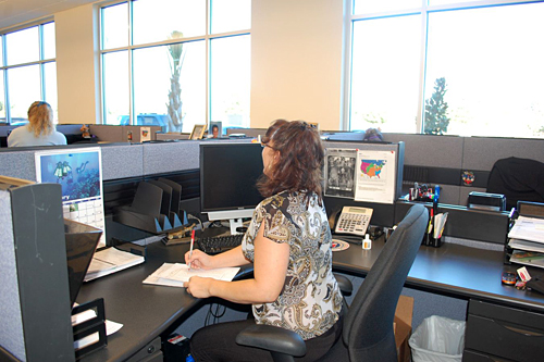 その間に、用意されたシャトルバスに乗って新社屋の見学会です。新社屋はタンパの国際空港から車で30分ほどの静かな場所にあります。新社屋は大きな会議室、社長や上級スタッフの個室、スタッフのエリア、コンピュータールーム、倉庫スペースからなる、広々としたきれいなオフィスでした(写真7~10)。