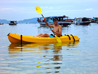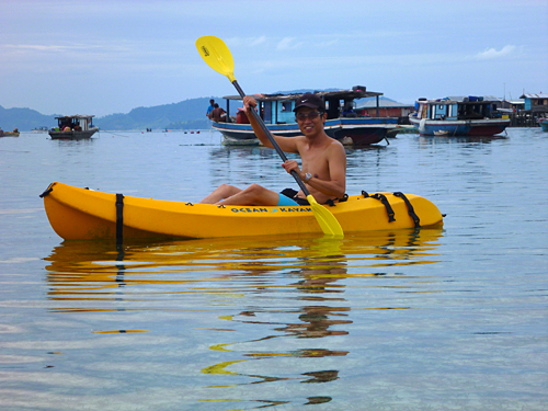 NAUI50周年アニバーサリー終了の翌日、10/11の午前中はダイビングを1DIVE実施し、午後はマブール島のインリーフを、和泉・岩本・桑原の3名でシーカヤックを使って一周しました(明朝10:30に飛行機に搭乗するため、24時間ダイビングを控えました)。