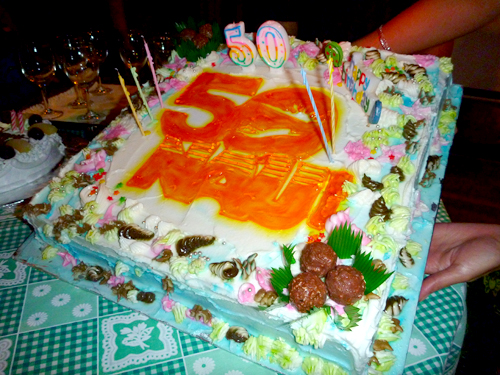 NAUI50周年アニバーサリーで行われた、各国のNAUIメンバーとの会食では、NAUI WW、NAUI JAPAN、NAUIアジアパシフィックリム、NAUIヨーロッパから参加した代表者が紹介され、シャンパンでの乾杯の他、50周年を祝うケーキが用意されました。