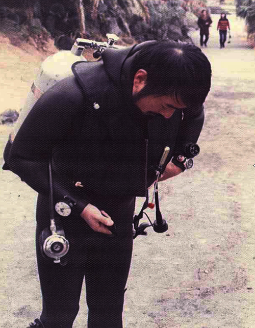 このとき、大学生であった私は、漠然と、好きな海で何か仕事が出来ないものかと考えておりました。たまたま海の雑誌で、ダイビングの記事に目が止まり、これなら仕事として今から始めてもこの道の先駆者になれるのでは、と思い付いたのです。かなりいい加減な動機でした。