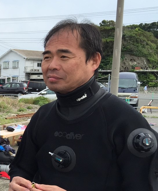 私は若い頃からダイビングをしたいと思っていました、それが孫誕生時に広報誌を見て孫の近くには、こんな綺麗な海が有るんだな~ダイビング出来たらどんなに素晴らしいだろうと思い、そんな時友人よりダイビングを始めました、人間って慾が出るものでショップの人たちと交流する中で孫にCカード認定出来たらな!でインストラクターになりましたが、今では、自分の好きな海を沢山の人に好きになって欲しいと思います、ゲストの沢山の笑顔がみられるようにガンバッテます。