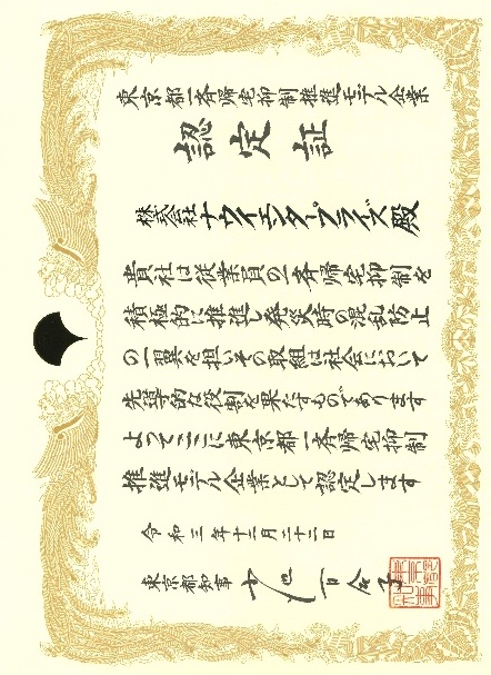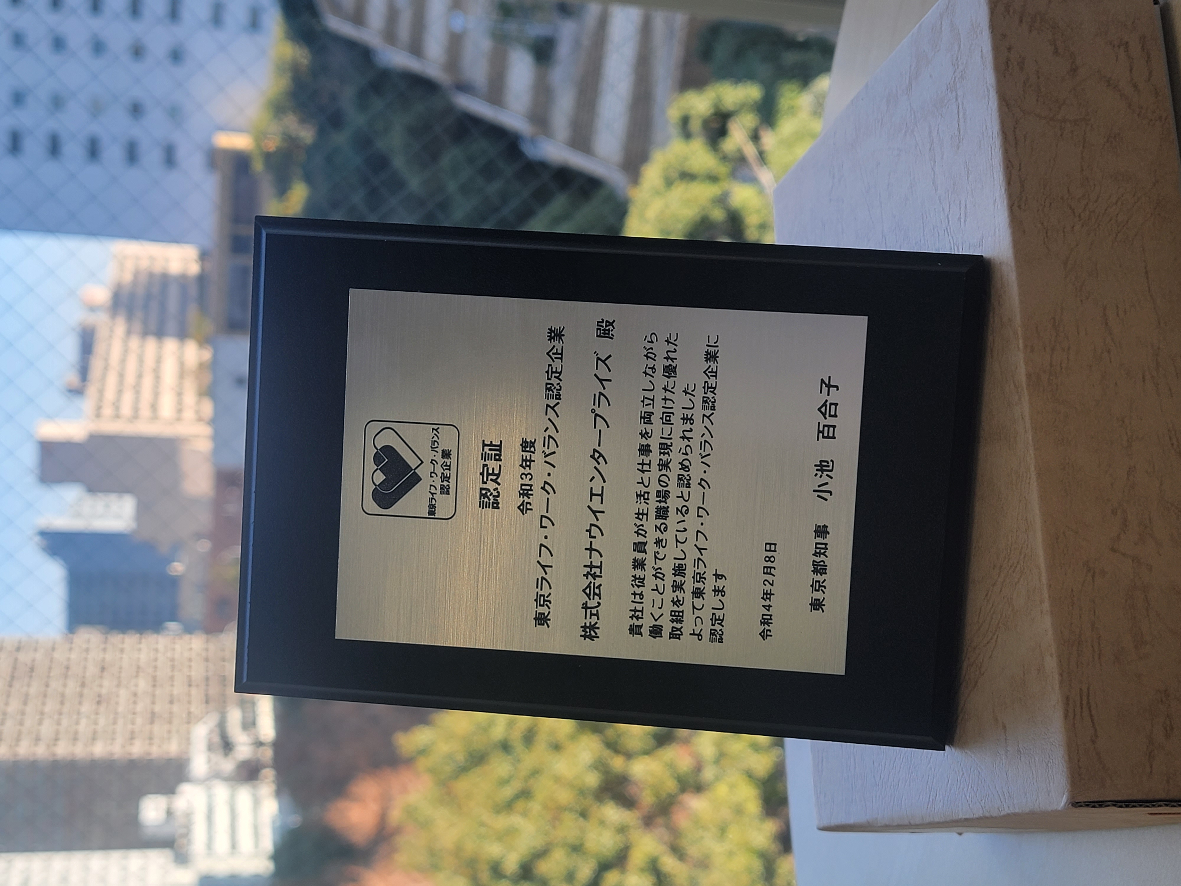 当社においても、従業員が生活と仕事を両立しながら、いきいきと働き続けられる職場の実現に向け、様々な制度の導入や職場環境を整備し、「東京ライフ・ワーク・バランス認定企業」として認定を受けました。
