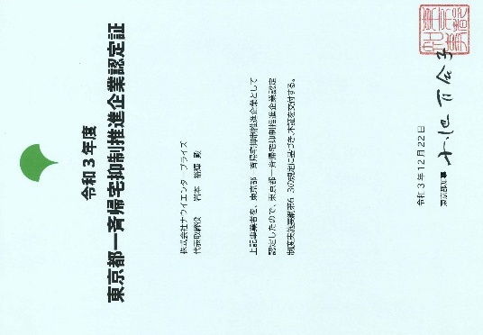 当社では「東京都帰宅困難者対策条例」に基づき、大規模災害発生時に備えた様々な取り組みを積極的に行っており、従業員の一斉帰宅抑制に特に優れた取り組み等を進めている「モデル企業」として東京都より認定を受けました。