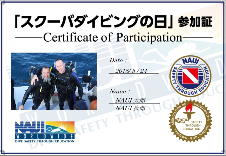 2018年5月19日(土)~5月27日(日)にダイビングに出かけた皆様に、「スクーバダイビングの日」デジタル参加証を発行いたします!!