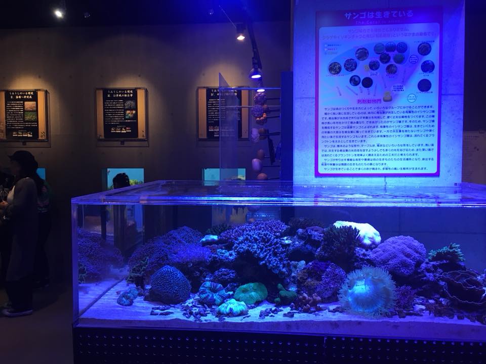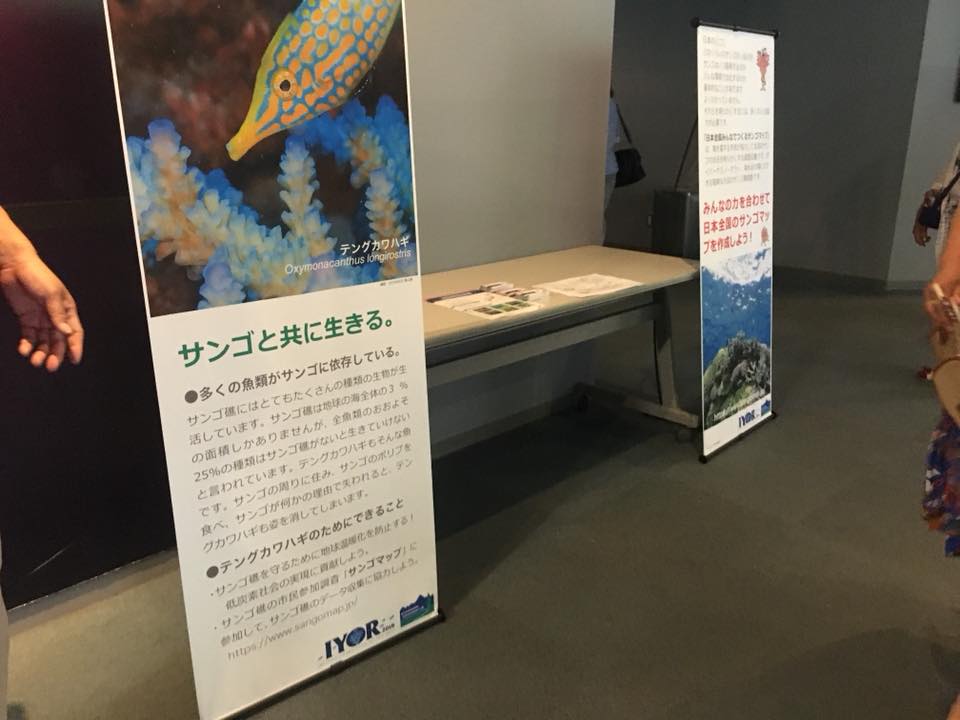 7日目は調査お休みで1日中イオワールド鹿児島水族館にご協力いただき普及活動を行いました。鹿児島水族館は国際サンゴ礁年のオフィシャルサポーターでもあり、素晴らしいサンゴの展示があり、多くのサンゴ系イベントをされています。我々もフロアに展示を出させていただいたり、サンゴの骨格染めのプログラム、また、地元のガイドさん向けのインタープリテーションのセミナーなどもさせていただきました。