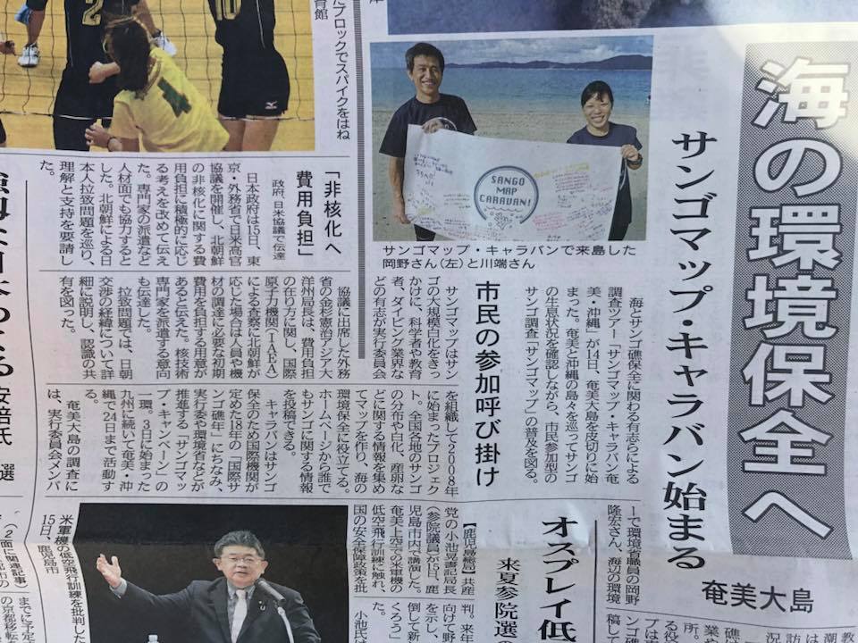 南海日日新聞さんにサンゴマップ キャラバンのことを記事にしていただきました!本日は加計呂麻島へ行ってきまーす!!!