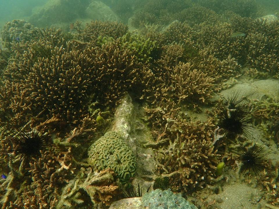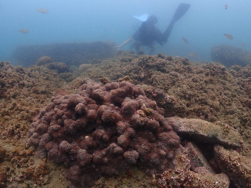 熊本県の水俣の明神海岸を調査しました。海藻とサンゴが混じる海でした。