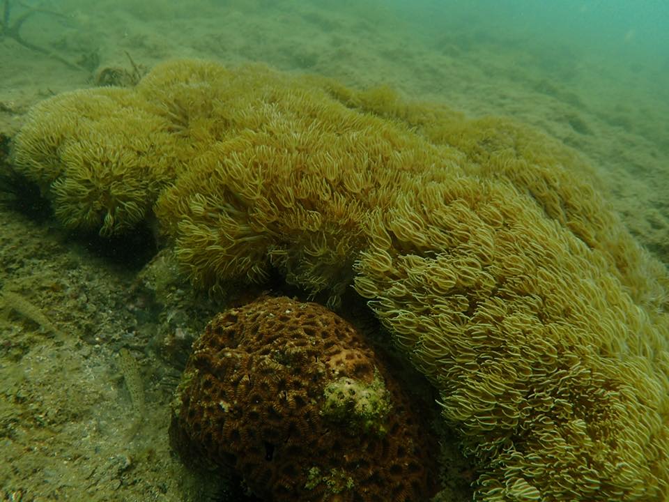 台風が接近していましたが、初日のポイントは、熊本県の上天草野釜島です。サンゴは見つからず、ミルやアマモなど海藻草中心でした。
