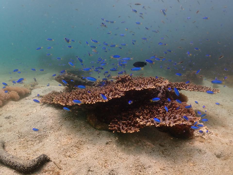 9月16日 1ヶ所目。波静かな湾に枝状サンゴの豊かな群落。魚もたくさんでした!